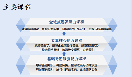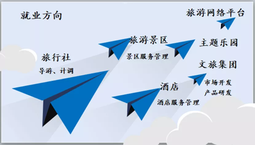 面向旅行社、旅游景区、主题乐园、旅游网络平台、酒店、文旅集团等旅游服务行业,从事导游、计调、景区服务管理、酒店服务管理、市场开发、产品研发以及各类旅游服务公司的服务与管理工作。