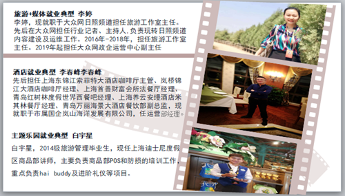 冯超,2018届毕业生,在校期间参加上海迪士尼乐园一线运营实习,积累了大量实战文旅经验。2018年就职于日照海洋公园营销中心销售部,2020年随公司参与筹建山西省太原市太原古县城项目,担任企划部负责人岗位,现负责济南园博园欢乐世界及水上乐园营销工作。