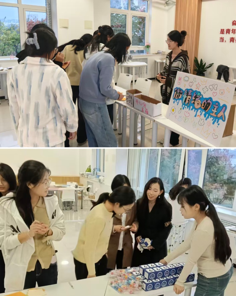 活动包括“开心分享”“情绪释放”“幸运抽奖”三大环节。参与者分享生活确幸,倾诉负面心绪,可以同活动人员或朋友分享自身产生消极情绪的原因,在交流中共同探讨日常情绪调节的实用方法,促使积极经验在互动交流中有效传递,进而深化对心理健康的认知与理解。最后,抽奖环节使同学们在收获心理成长之余,也获得额外的惊喜感和体验感。