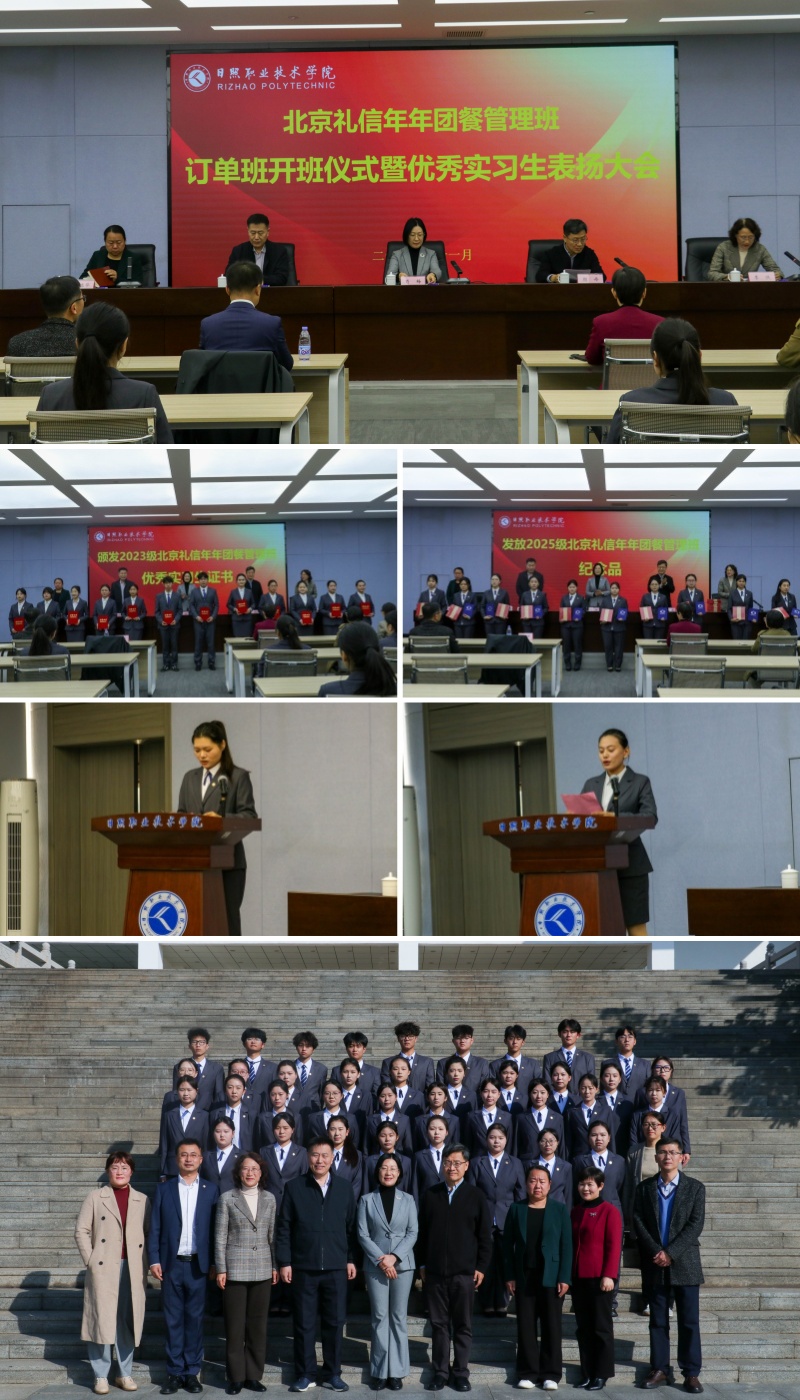 开班仪式标志着我校与北京礼信年年餐饮管理有限公司的合作迈入新阶段,充分彰显了学校以产教融合为抓手、以校企协同育人为路径,主动服务区域经济发展与行业转型升级的责任担当。未来,我校将继续立足团餐行业发展需求,聚焦高技能人才培养核心,不断创新校企合作模式,为推动教育链、人才链、产业链、创新链“四链”深度融合,贡献更多“日职力量”。(人文与旅游系 付坤伟 谢慧)